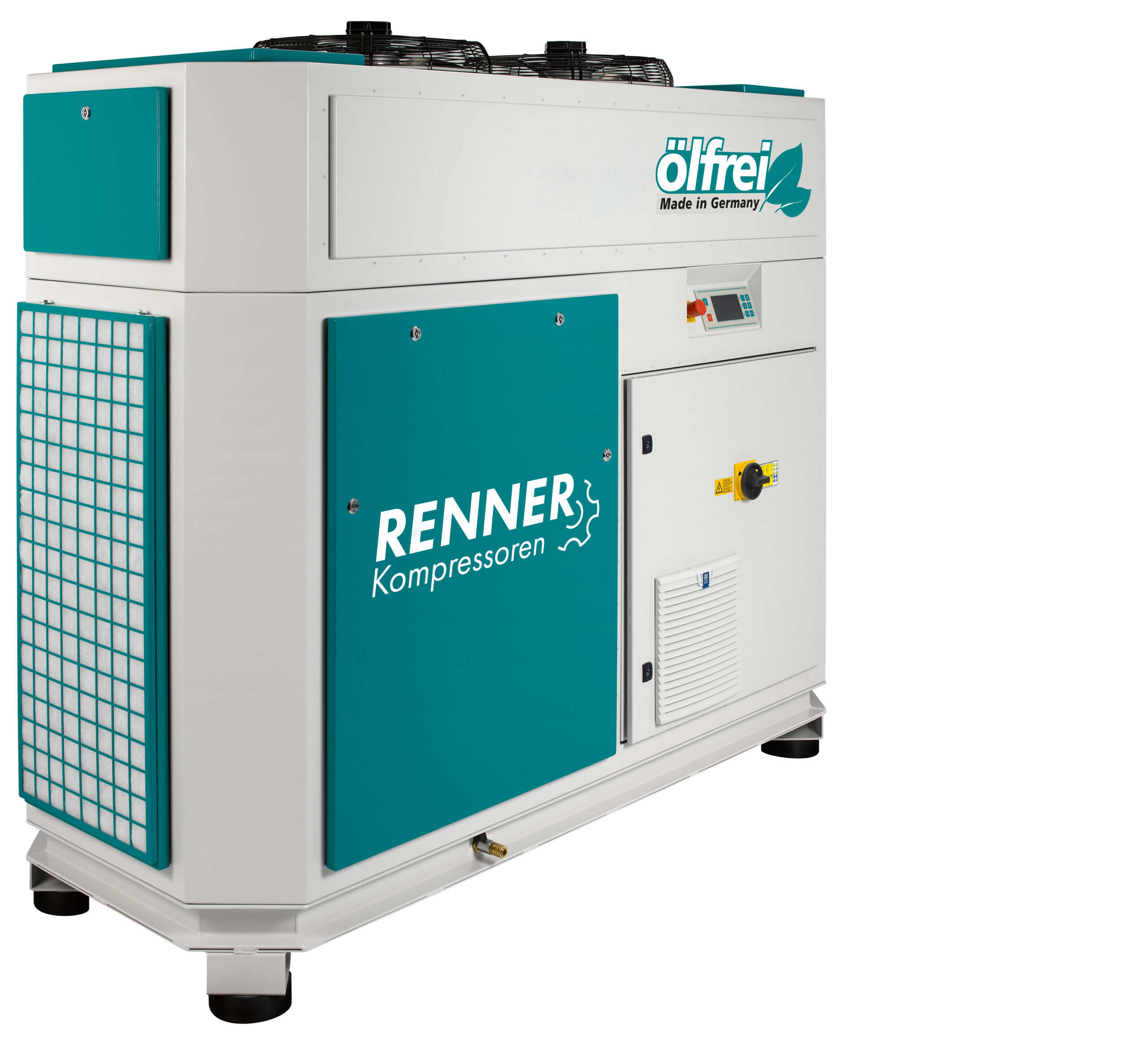Bezolejowe sprężarki śrubowe z wtryskiem wody firmy RENNER doskonale nadają się do wszystkich zastosowań wymagających czystego sprężonego powietrza. Brak ryzyka zanieczyszczenia olejem i wynikających z tego przestojów w produkcji – w 100% wolne od oleju sprężone powietrze to jedna z przewag tych sprężarek śrubowych. Wysoka niezawodność oraz niskie koszty eksploatacji i konserwacji to podstawowe zalety sprężarek RENNER RSW. Sprężarki śrubowe RENNER z wtryskiem wody serii RSW i RSWF, dostępne w zakresie mocy od 18,5 do 120,0 kW. Zostały opracowane w celu zapewnienia ekonomicznej produkcji bezolejowego sprężonego powietrza. Cechą szczególną tych sprężarek, chronioną patentem użytkowym jest fakt, że olej sprężarkowy stosowany zwykle do chłodzenia, uszczelniania i smarowania został całkowicie wyeliminowany z procesu sprężania. Olej został zastąpiony najbardziej naturalnym z surowców: wodą. Woda, będąc idealnym nośnikiem ciepła, odbiera ciepło powstałe w procesie sprężania, zapewniając w ten sposób niską temperaturę w układzie. Zaletą niskich temperatur jest niemal izotermiczne sprężanie, które jest niezwykle ekonomiczne przy dużym przepływie powietrza.