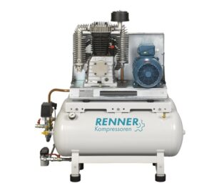Kompresor olejowy, dwutłokowy, jednostopniowy, wydajność: 190l/min, ciśnienie max.: 10 bar, moc silnika: 1,5kW, zasilanie: 400V, pojeność zbiornika: 50l, wymiary: 842x383x723mm, waga: 52kg, poziom hałasu: 96dB(A)