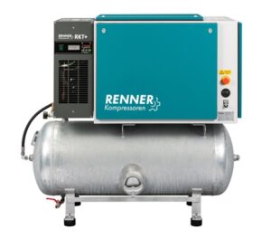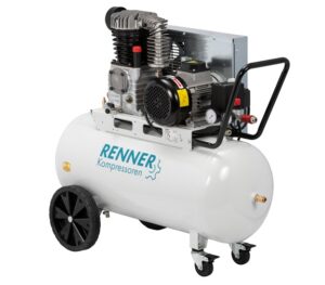 Kompresor olejowy, dwutłokowy, dwustopniowy, wydajność: 470l/min, ciśnienie max.: 11 bar, moc silnika: 4kW, zasilanie: 400V, pojeność zbiornika: 90l, wymiary: 1030x483x1037mm, waga: 94kg, poziom hałasu: 97dB(A)