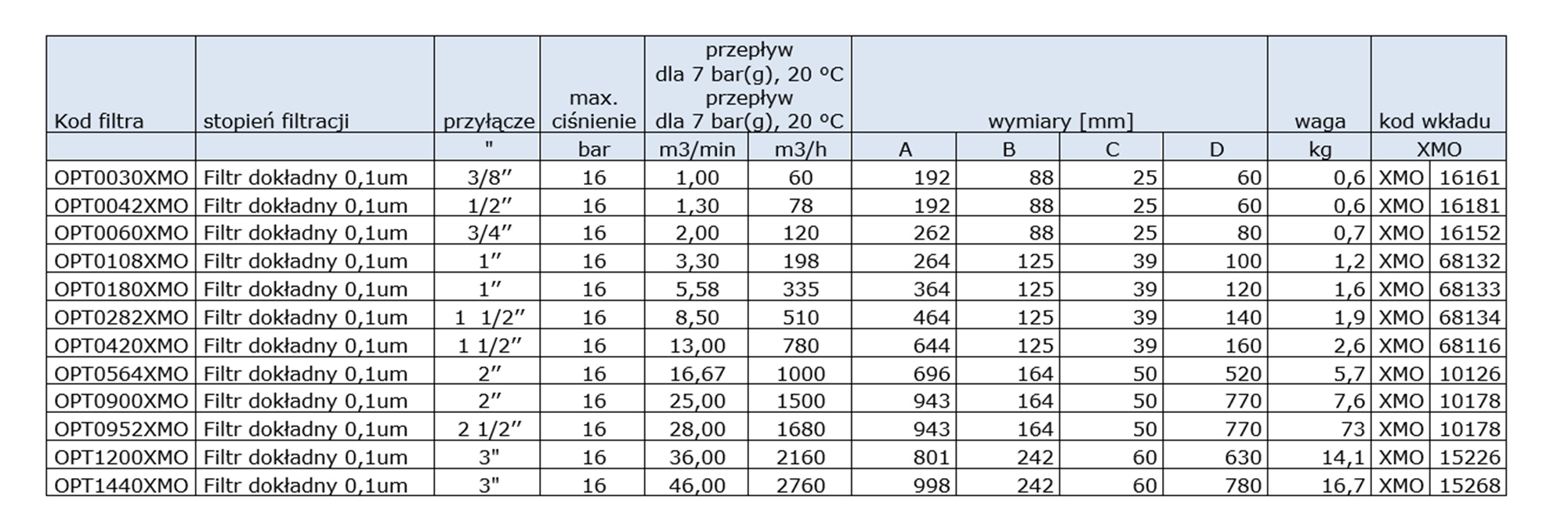 Filtr dokładny 0,1um, przyłącze: 3″, przepływ: 46,00m3/min, ciśnienie max.16bar