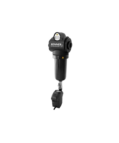 Filtry sprężonego powietrza RENNER do 16bar nadają się do oddzielania aerozoli olejowych i wodnych, a także do usuwania zanieczyszczeń stałych ze sprężonego powietrza. Nawet kurz jest bezpiecznie zatrzymywany na powierzchni filtra. Osiągana jest skuteczność filtracji na poziomie prawie 100%. Filtr standardowy wyposażony jest w odwadniacz sterowany mechanicznie. Solidna aluminiowa obudowa pokryta jest żywicą i dlatego jest szczególnie odporna na agresywne kondensaty. Wolna od turbulencji powierzchnia w dolnej części obudowy filtra gwarantuje, że już oddzielony kondensat nie będzie odprowadzany poza mokrą strefę ze strumieniem czystego powietrza. Plisowane elementy filtrów sprężonego powietrza pochłaniają wyjątkowo mało energii, ze względu na bardzo niskią różnicę ciśnień. Filtry sieciowe RENNER charakteryzuje niska różnica ciśnień przez cały okres użytkowania. Zakres temperatur pracy: maksymalnie 60°C, minimalnie 2°C.