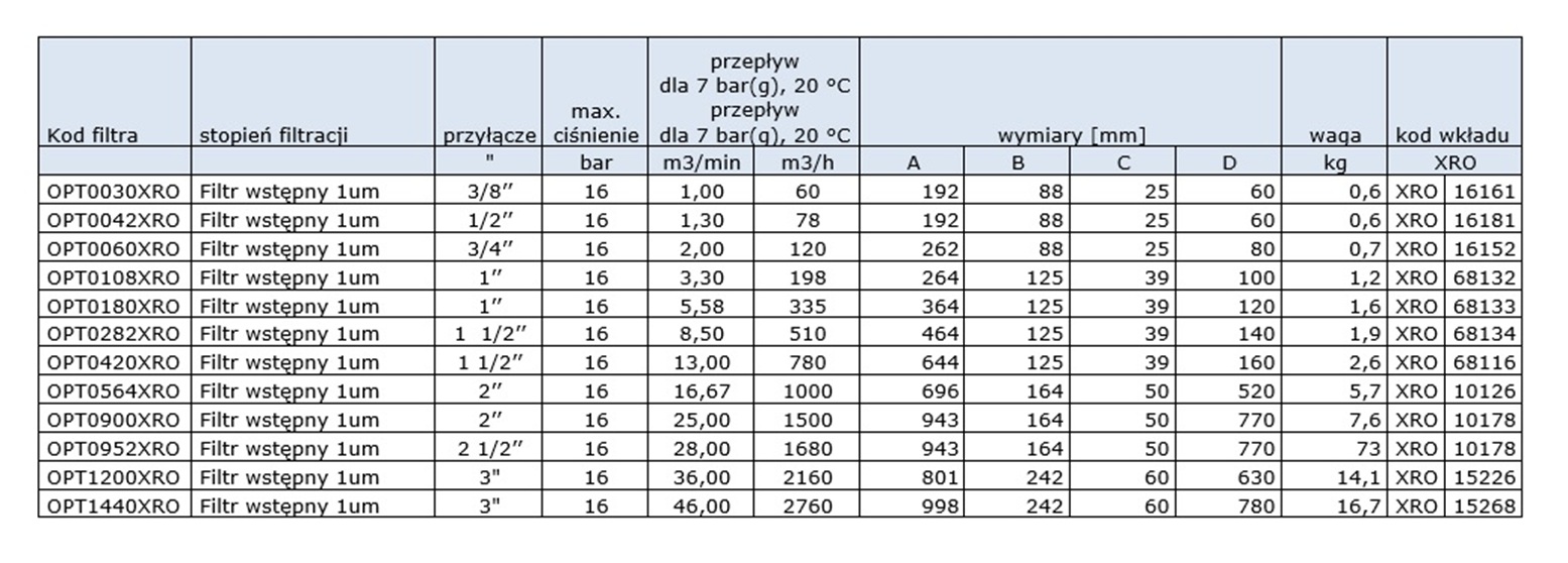Filtr wstępny 1um, przyłącze: 3″, ciśnienie max. 16bar, przepływ: 46,00m3/min