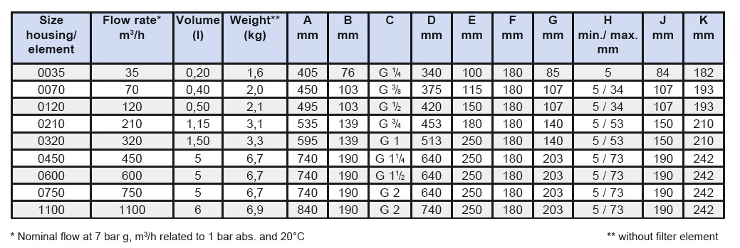 Kolumna węglowa, przepływ przy 7 bar: 1,25m3/min, przyłącze: 1/2″, wymiary: 212x160x1277mm, waga: 20,3kg, ciśnienie. max 16bar
