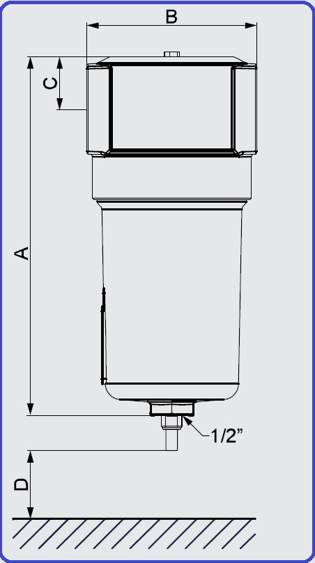 Kolumna węglowa, przepływ przy 7 bar: 1,25m3/min, przyłącze: 1/2″, wymiary: 212x160x1277mm, waga: 20,3kg, ciśnienie. max 16bar