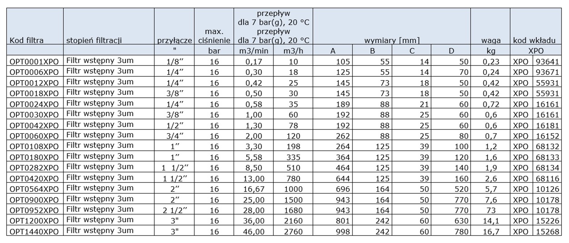 - Typy i rozmiary filtrów zależą od przepływu sprężonego powietrza, a także ilości i typu zanieczyszczeń