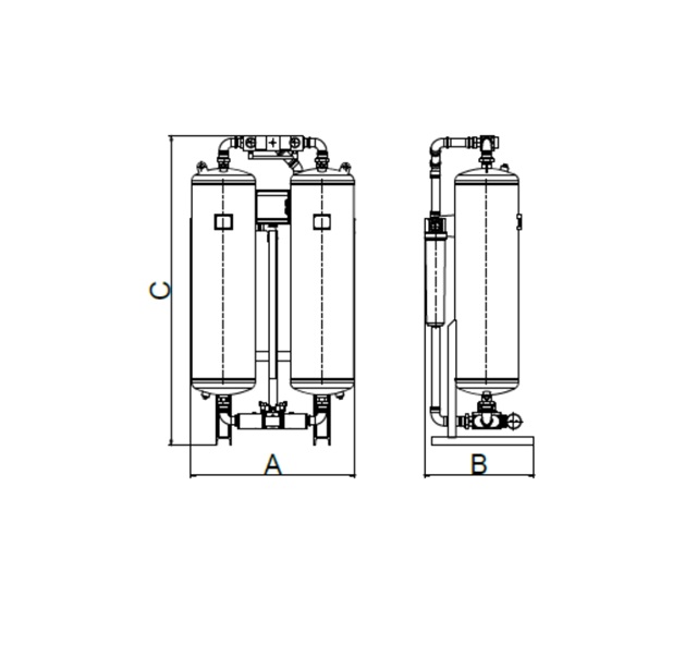 Osuszacz adsorbcyjny B-DRY 200, zimno regenerowany, punkt rosy -40°C, przepływ na wejściu przy 7bar: 3,33m3/min, przepływ na wyjściu: 2,61m3/min, wymiary: 707x471x1664mm, waga: 196kg, przyłącze: 1"