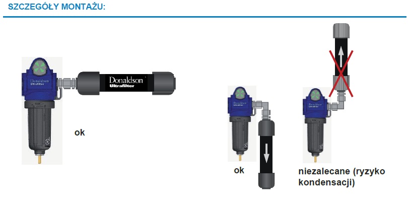 Wymagania dotyczące filtracji wstępnej: maks. cząstki 1 μm; filtr koalescencyjny oleju 0,01 μm