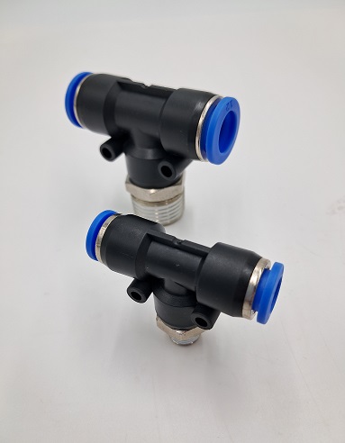Trójniki wtykowe T z gwintem są elementami złącznymi do stosowania w pneumatycznych układach napędowych i sterujących. Służą do montażu przewodów pneumatycznych elastycznych wykonanych z poliuretanu PU, PUN, Polietylenu PE lub Poliamidu PA. Dzięki trójnikom wtykowym T z gwintem można łączyć w układzie przewody o średnicach zewnętrznych od 4mm do 12mm. Zakres gwintów w trójnikach wtykowych T z gwintem obejmuje średnice od G1/8” do G1/2”.