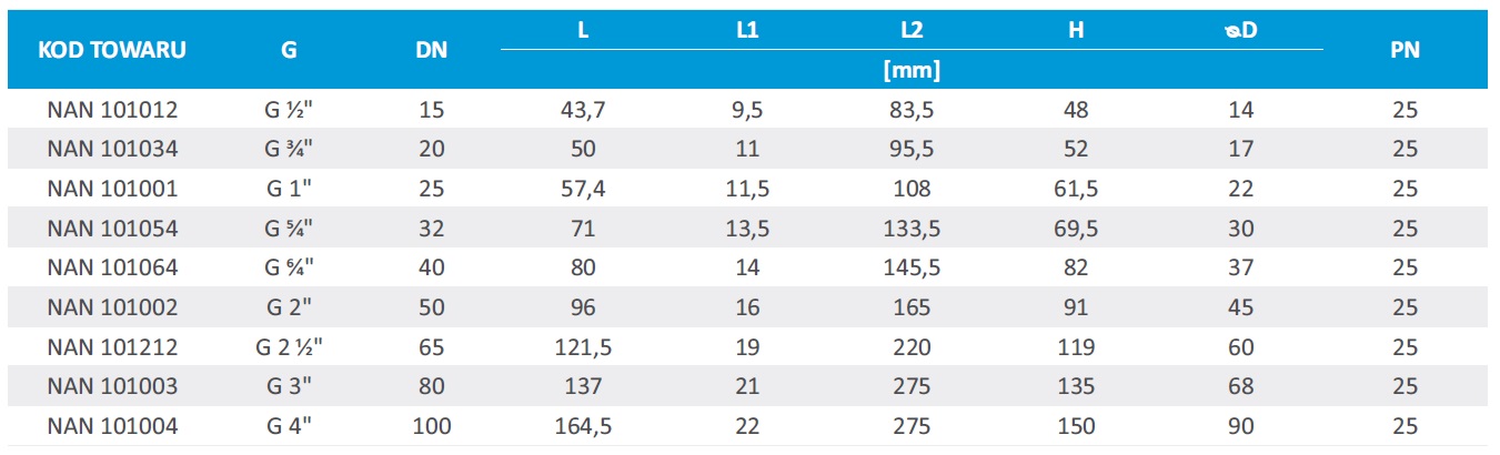 Zawór kulowy NANOPANEL z dźwignią jednoramienną, GW-GW, PN25, DN65, kod: NAN101212
