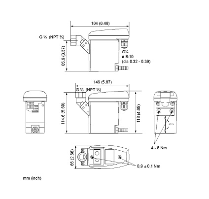 min./max. ciśnienie robocze: 0,8…16 bar (12…230 psi)
