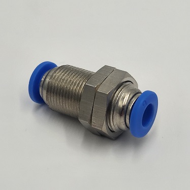 Złączki grodziowe wtykowe to szybki i wygodny sposób na doprowadzenie medium roboczego przez osłony maszyn i urządzeń lub ścianki szaf sterowniczych.