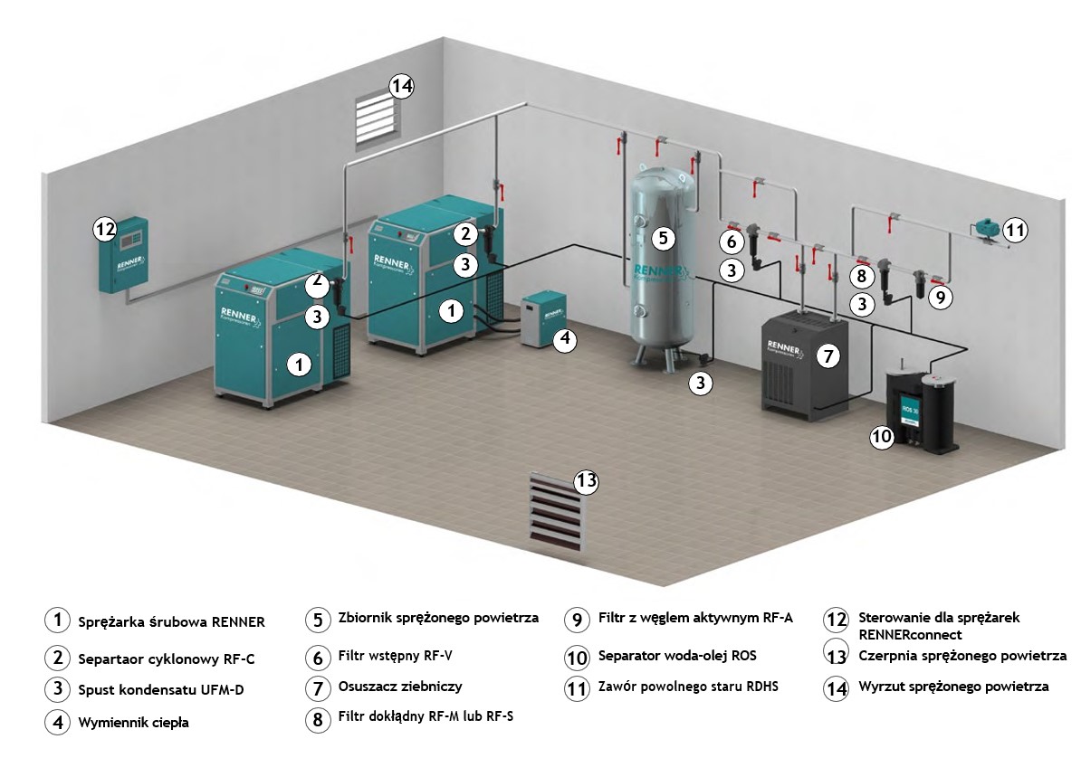 Jakość powietrza: pozwoli dobrać odpowiednie osuszacze (ziębniczy lub adsorpcyjny) oraz filtry